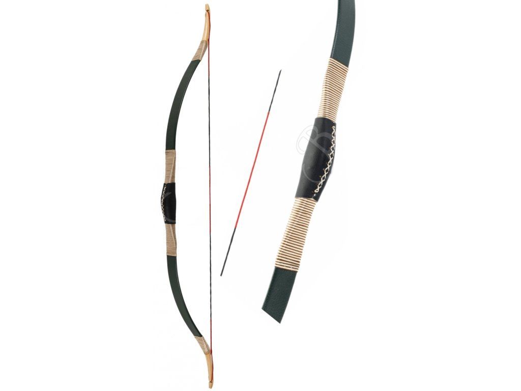 A cost-effective hobby traditional Turkish-style bow with a slightly forward grip and unstrung limbs in a cursive C shape for enthusiasts of traditional archery. Inside, the material is fiberglass-coated with leather. The string is included in the price. The bow has a smooth draw and a respectable speed when used with carbon arrows.
