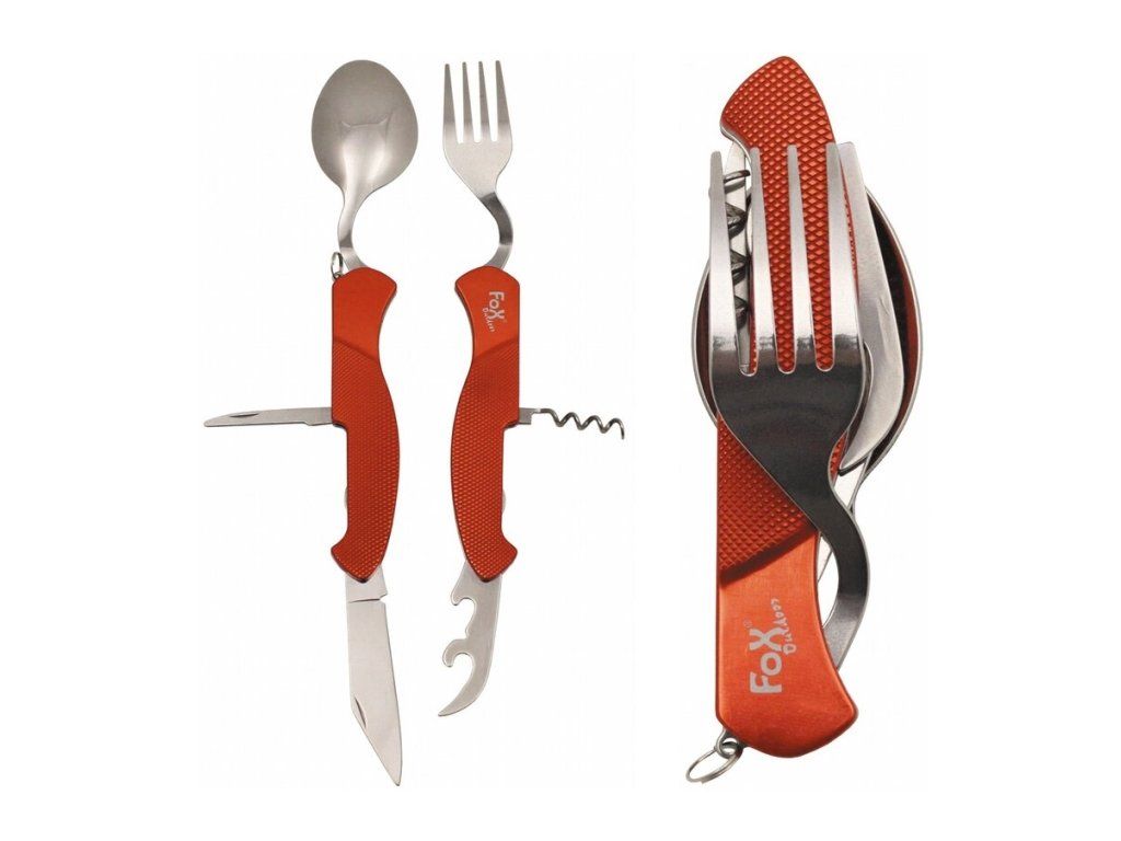 Vreckový príbor rozkladací 6 v 1 oranžový (873411)