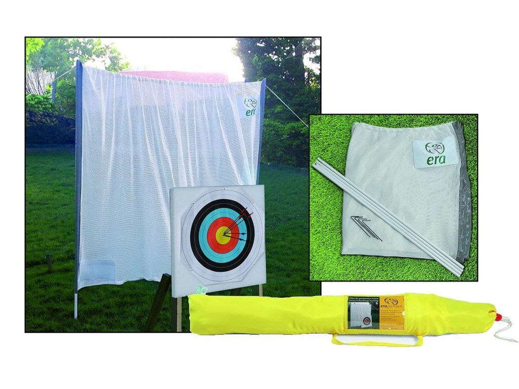 This innovative net for ERA bows is perfect for hobby archery and bows up to 30 lbs, complete with adjustable support bars on the sides, portable. Ideal for use in the garden, archery is safe even in domestic conditions. The net captures ERA bows up to 30 lbs (up to 28 lbs with sharp-pointed wooden bows). It is not intended for drawstrings or crossbows! The net completely captures or significantly slows down (if it`s about very thin carbon fiber arrows and a bow over 30 lbs, they may pass through the net, so check for which arrows you want to use the net and what power the bow has.)